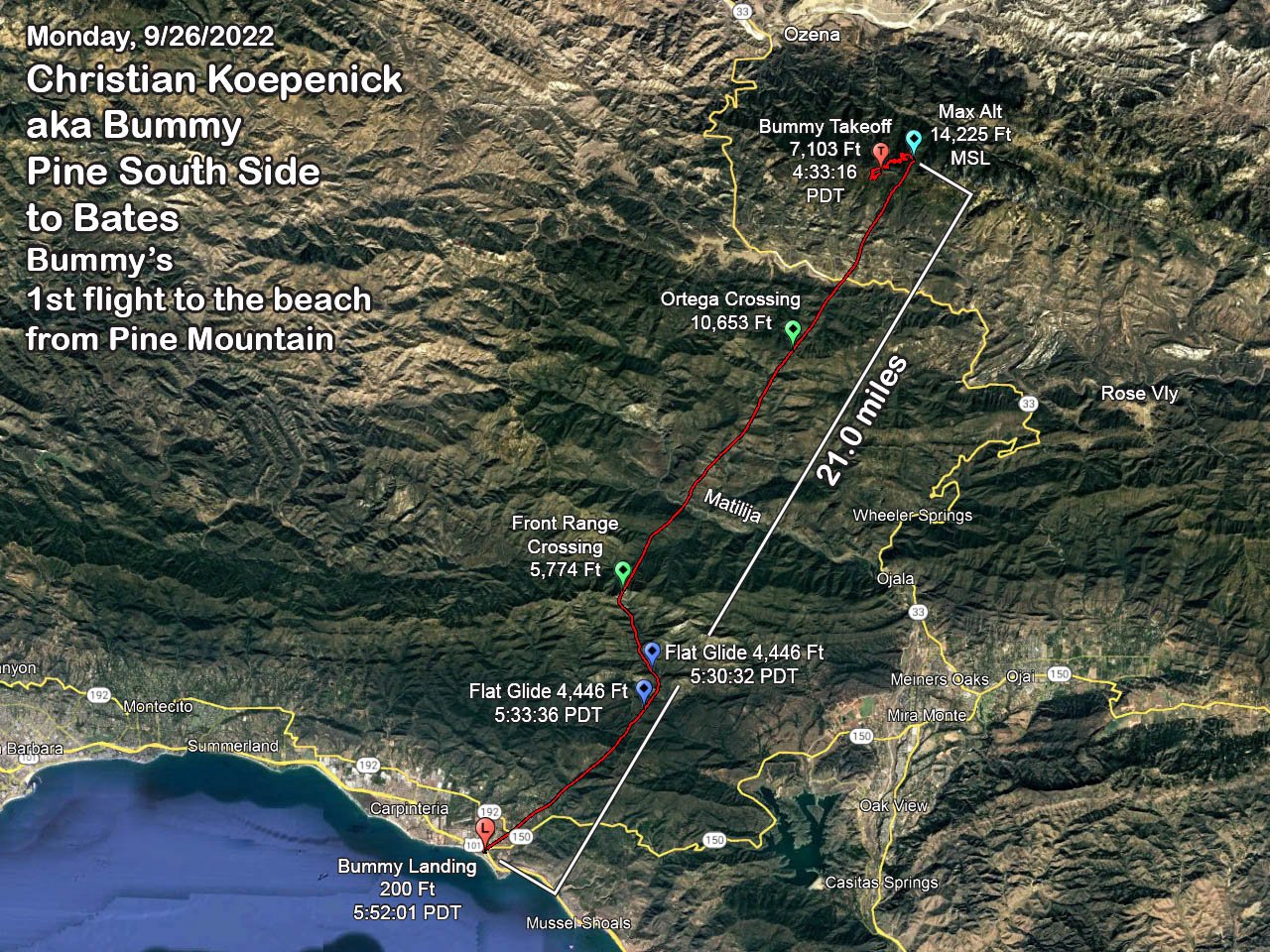 Pine SS to Bates (Bummy's 1st flight to the Beach from Pine Mt)